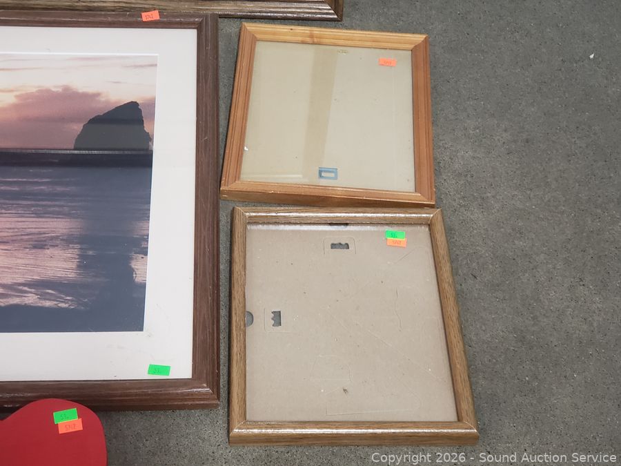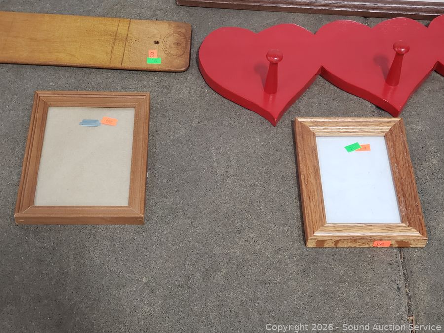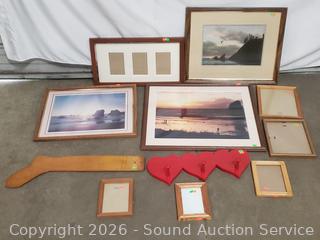 Approx. 5x7", 8x10", 16x20", 20x24" picture frames. 7" x 20" coat/hat rack.