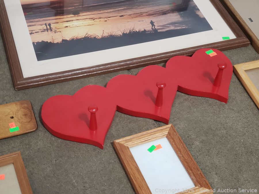 Lot #0051: Assorted Picture Frames, Red Coat/Hat Rack