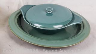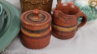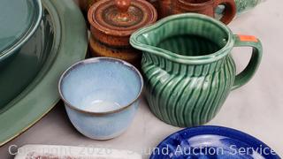 Creamers, steamer lids, platter, bottle, etc. Refer to photos for lot contents, more details.
