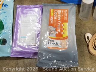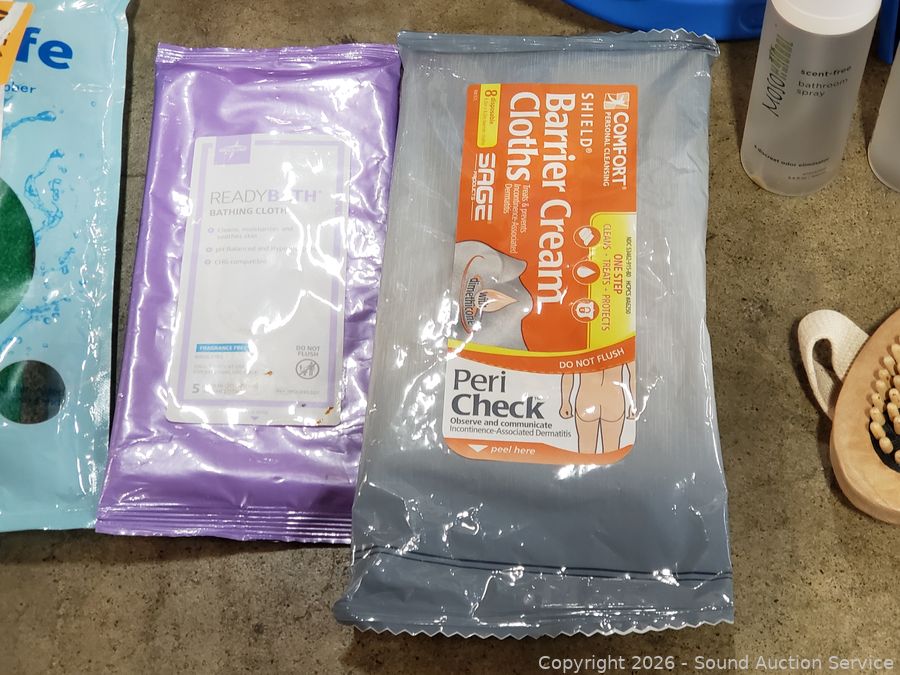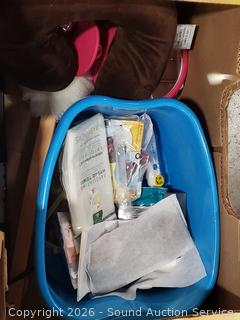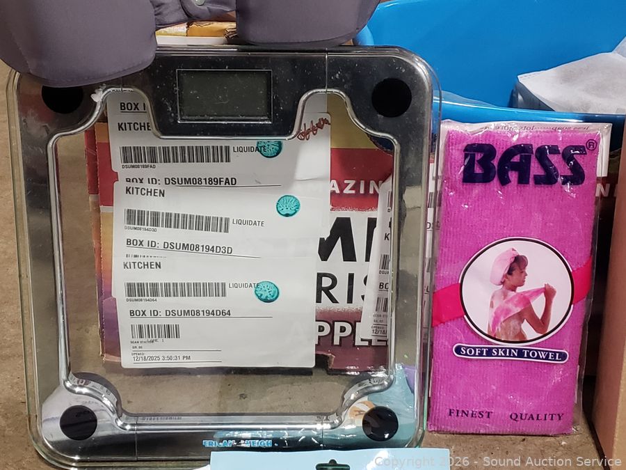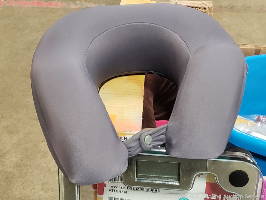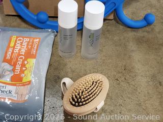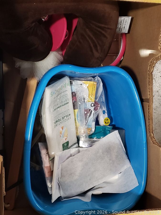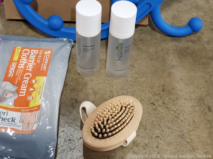 Liba self-massage tool, hair turban, shoehorn, neck pillows, scale, mirrors, brush, bathroom spray, etc. Refer to photos for lot contents, more details.