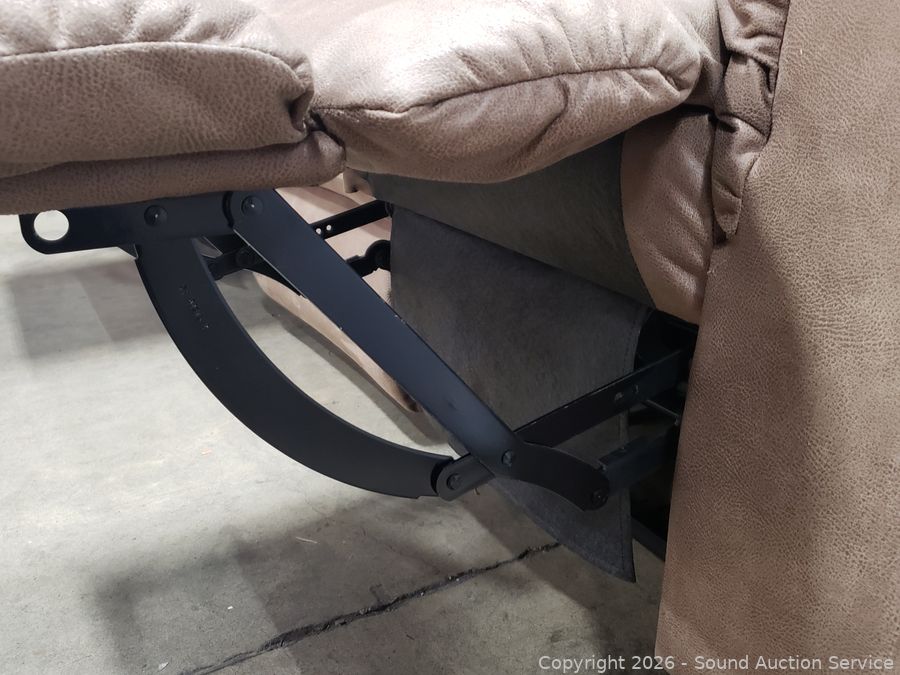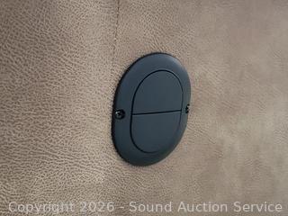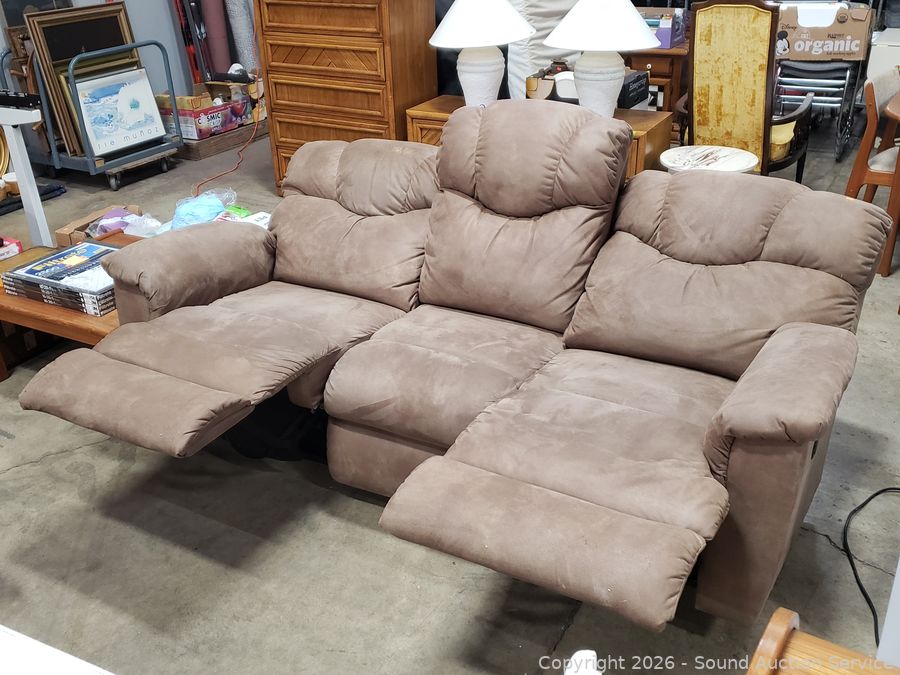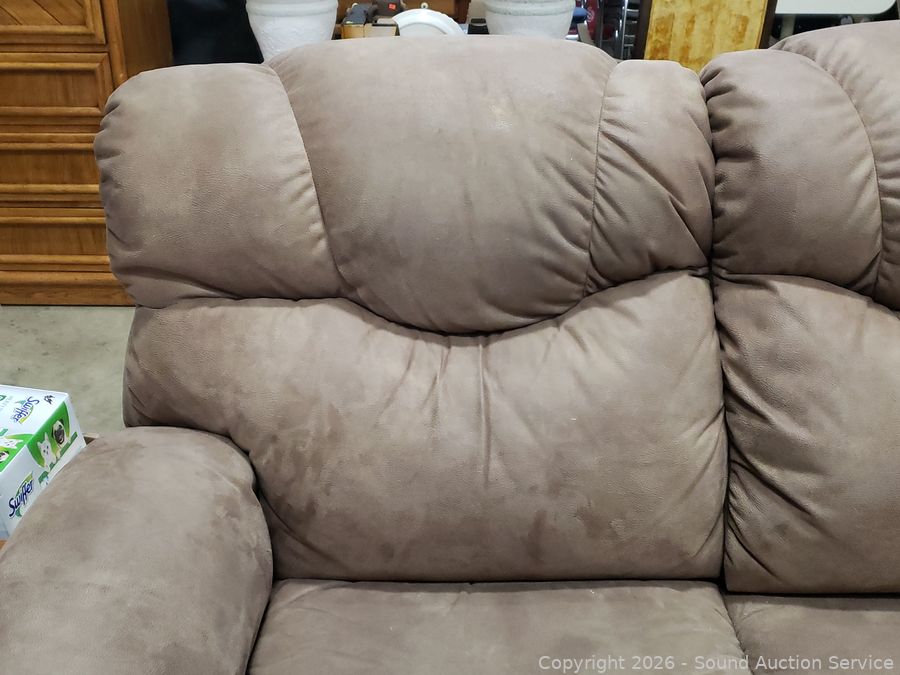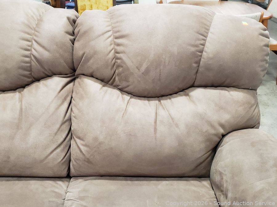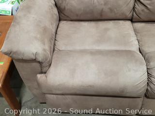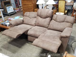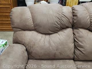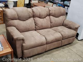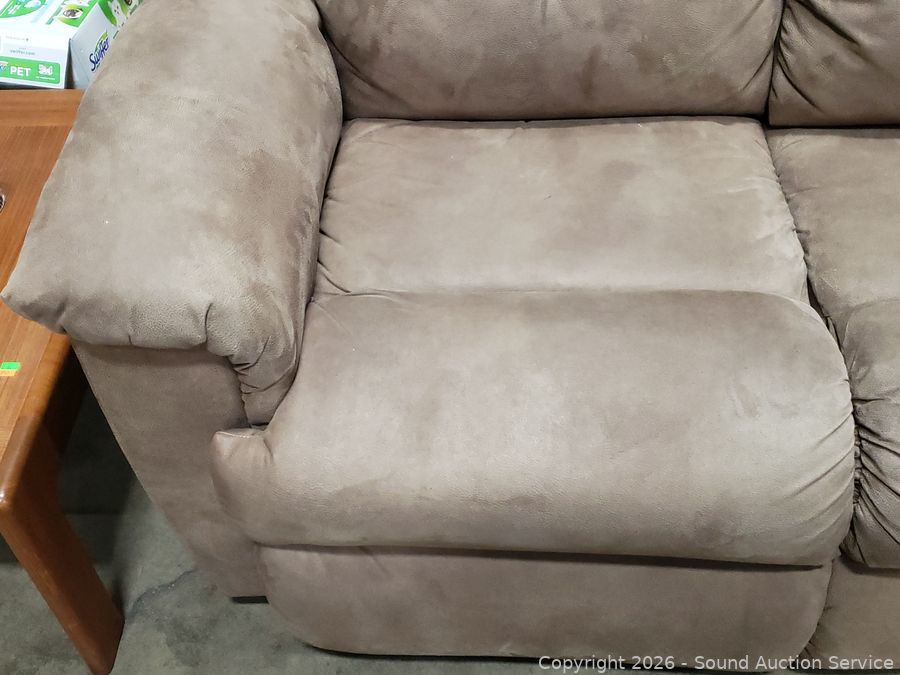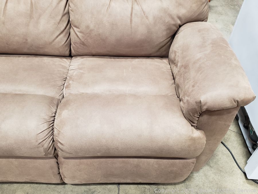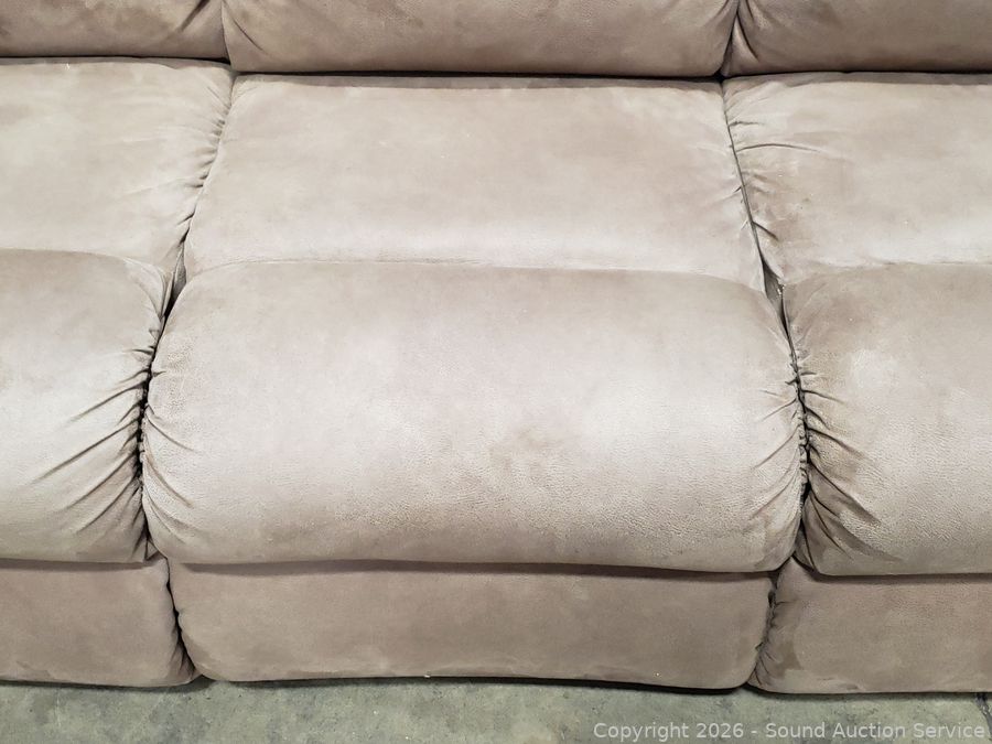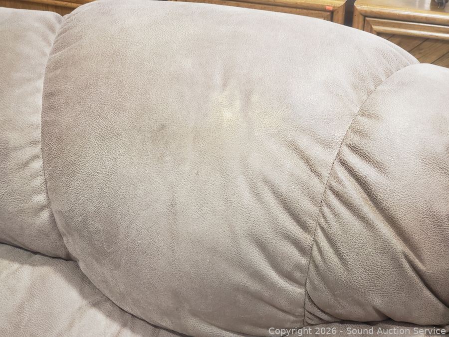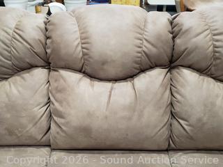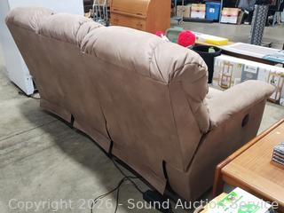 Lot #0013: Beige Microfiber Upholstered Power Reclining Sofa