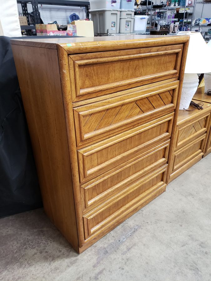 Lot #0018: Dixie Oak 5-Drawer Dresser