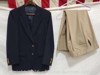 Lot #0348: Geoffrey Beane Navy Blazer & Beige Slacks