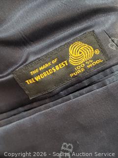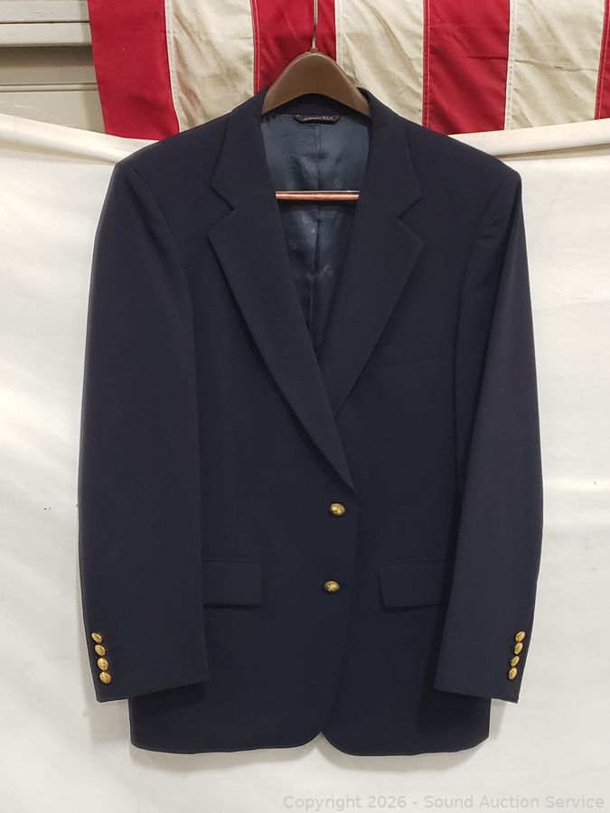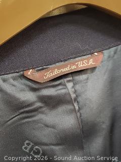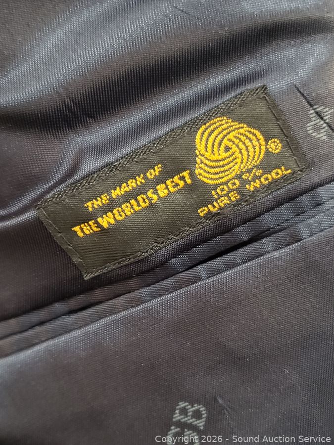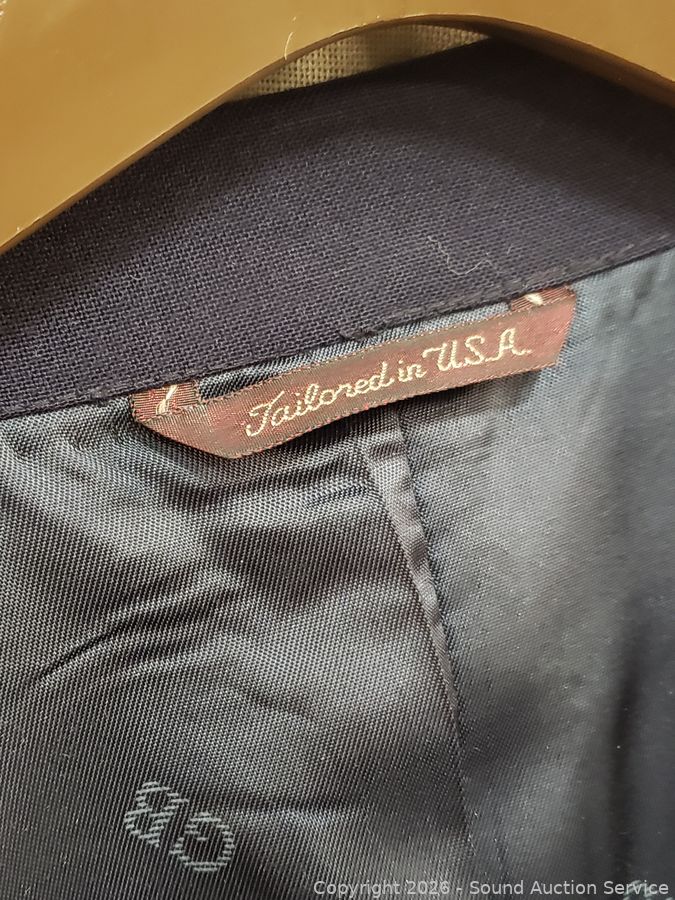 Don't see a size, probably 41R, 32" L x 19" W shoulders, 25" outer arm, 19" inner arm blazer, 29" inseam, 34" waist. Don't see any issues.