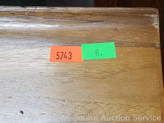 15.25" H x 75" L x 16" W. Some scuffs, wear to finish.