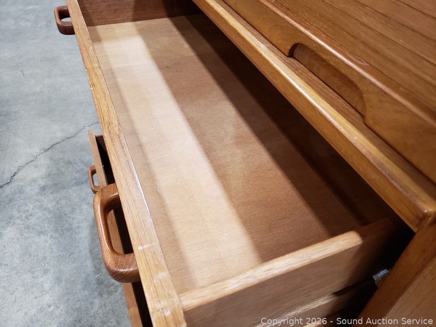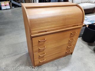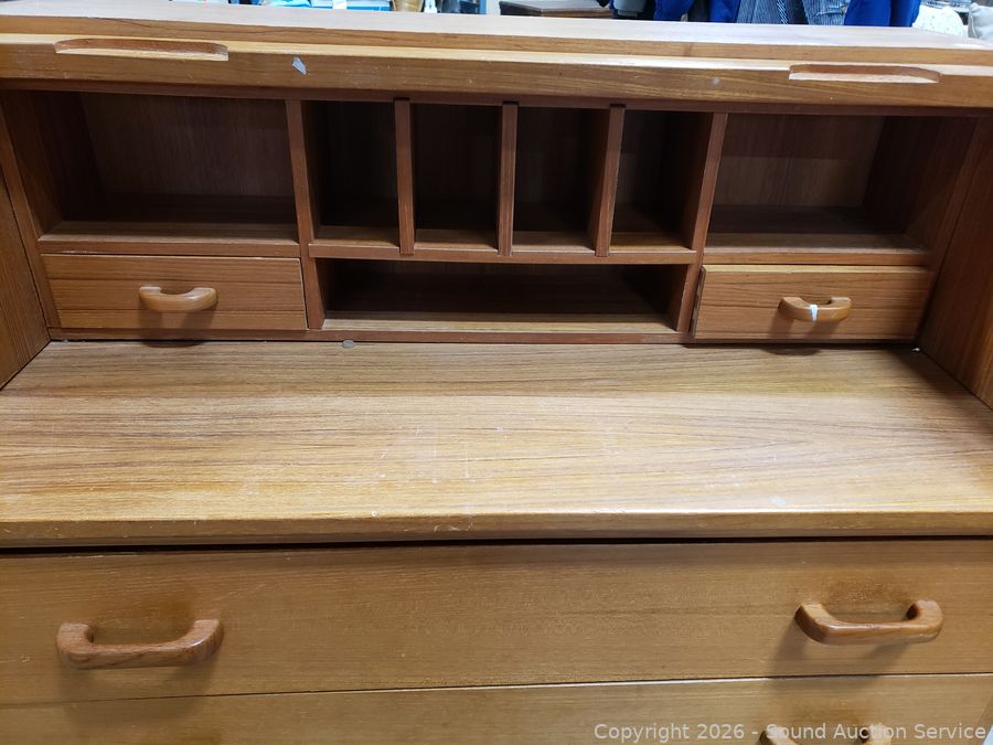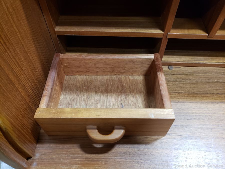 Lot #0007: MCM Teak Veneer Rolltop Desk