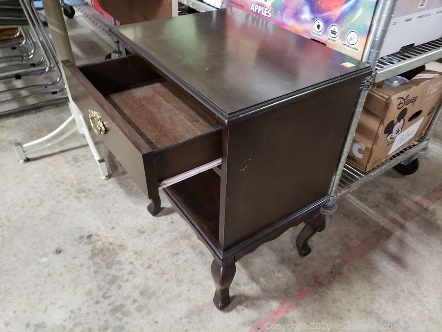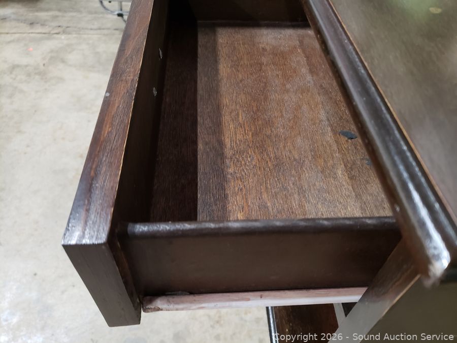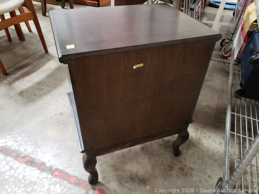 Some minor scuffs. All wood construction, roller drawer guides. 26" W x 20" W x 15" D.