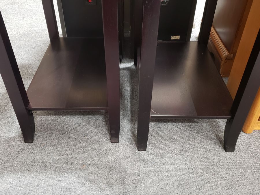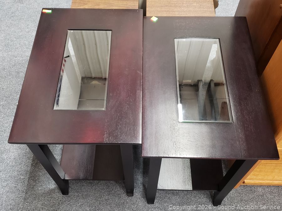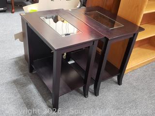 Lot #0028: 2 Dark Finish Glass Top Side Tables