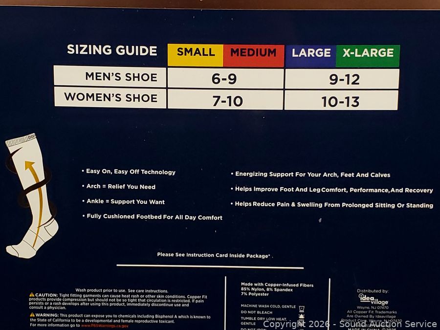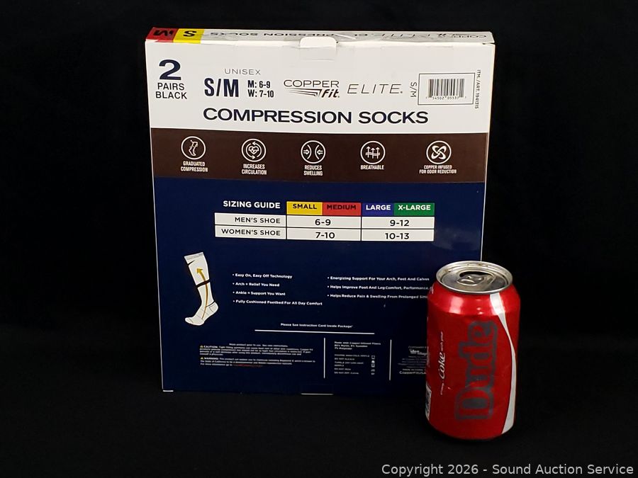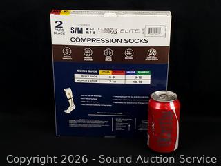 Lot #0215: 2 Pairs Copper Fit Elite Compression Socks S:S|M