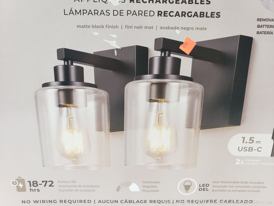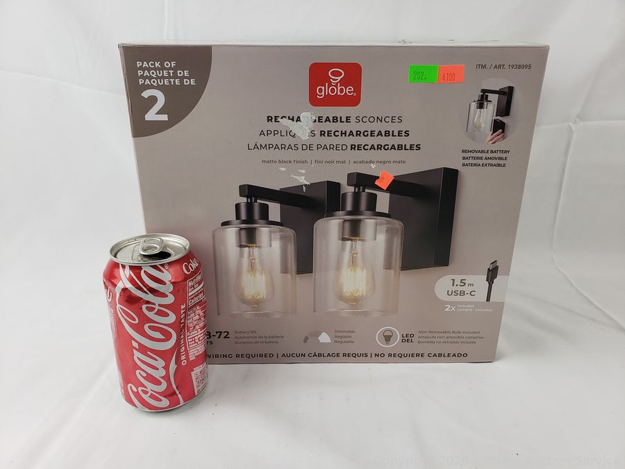 Lot #0202: 2pk Globe Rechargeable Wall Sconces