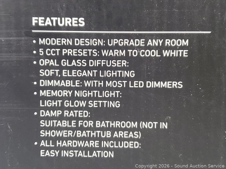 Integrated LED's, 2500LM, 2700-6500K color, 35W, 3.07" x 14.94". Appears to be functioning as intended. Very light scuffs on edges.
