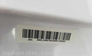 Has power, appears to be functioning as intended. Light scratches. 12.25" H x 20.25" W x 17" D.