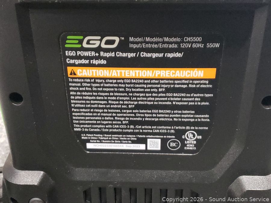 Comes with 1 battery, charger, grass catch. Everything appears to be functioning as intended. Light wear from use, good cosmetic condition.