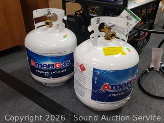 In excellent cosmetic condition. Comes with original box. Model T06373. Setup for propane, comes with 2 propane tanks. 6 Gallon Fuel tank. Propane tanks are empty. 24" H x 24" x 19.5".