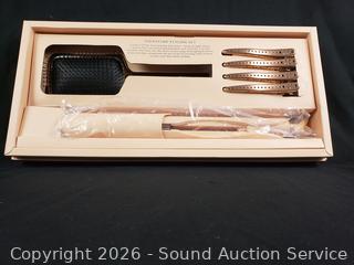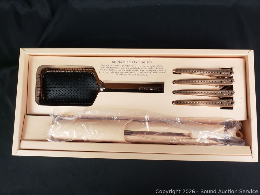 3-in-1 ceramic flat iron, 4 hair clips, detangling brush. Don't see any issues. Appears to be functioning as intended.