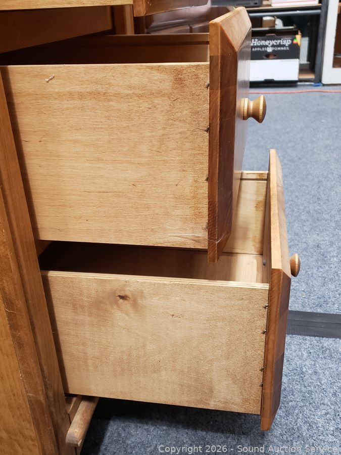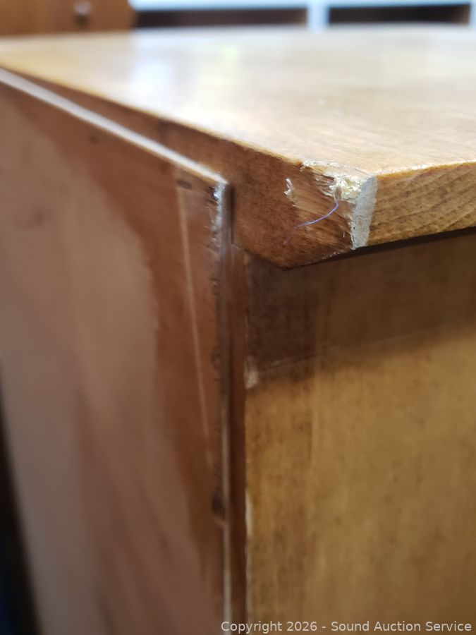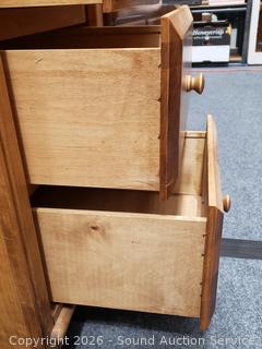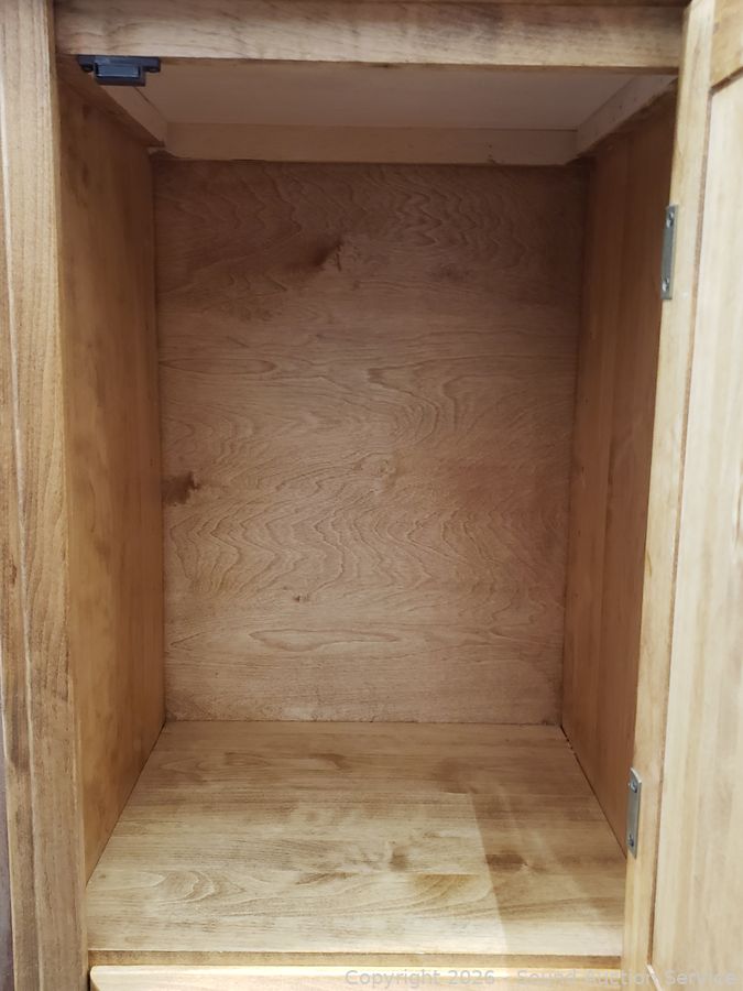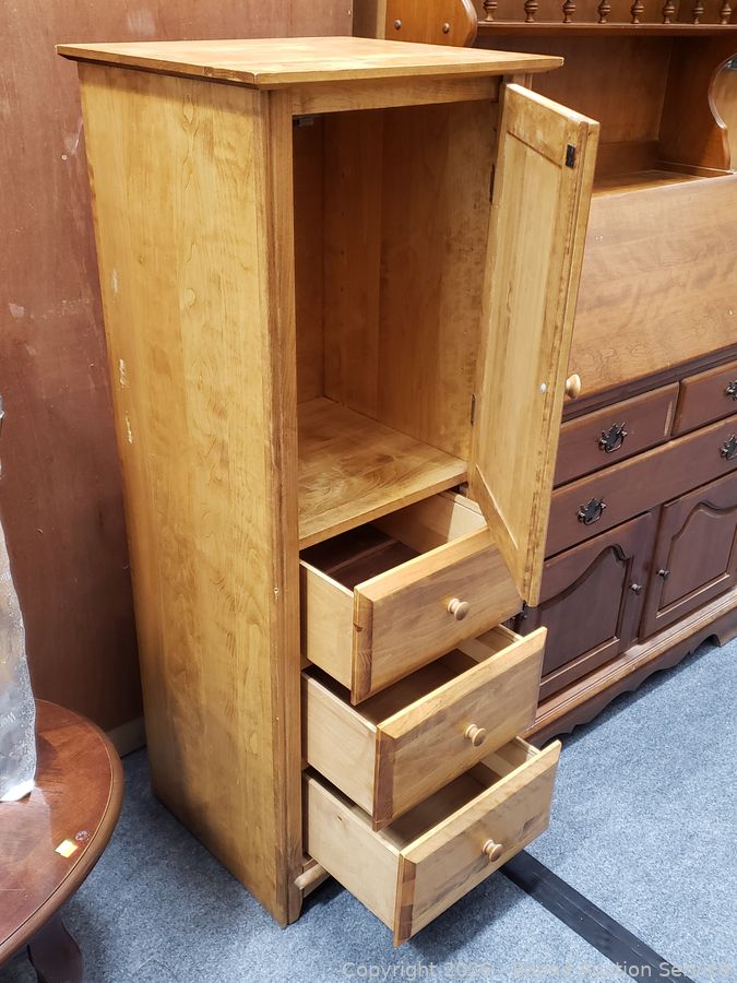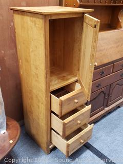 Appears to be all wood construction. Some scuffs, mainly on the left facing side. 53.25" H x 20.25" W x 17.75" D.