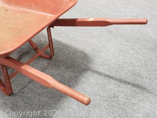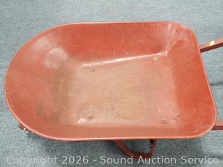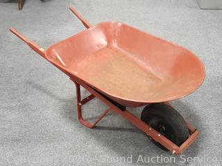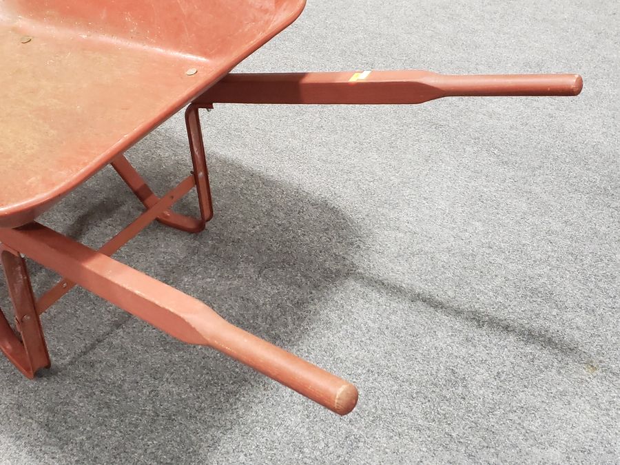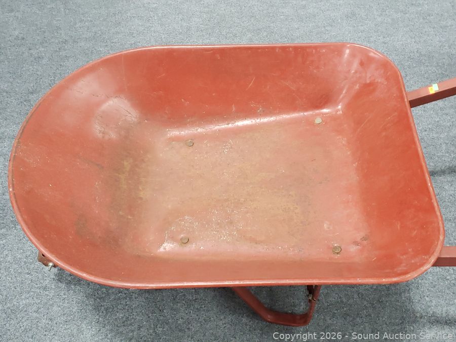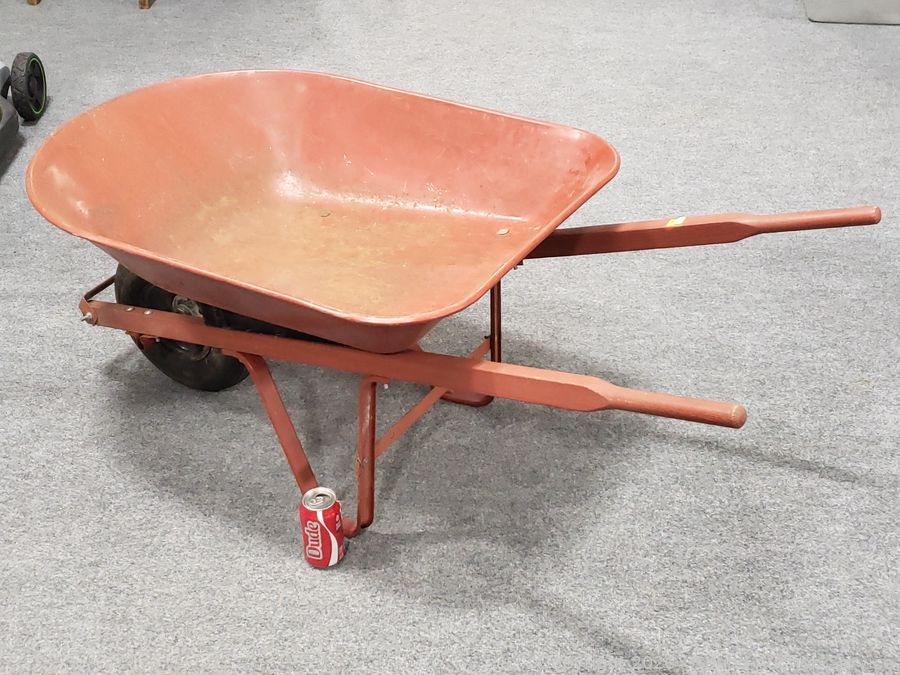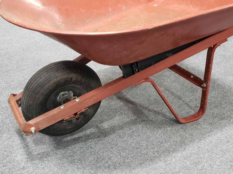 Inflatable tire, appears to be holding air. Signs of wear from use.