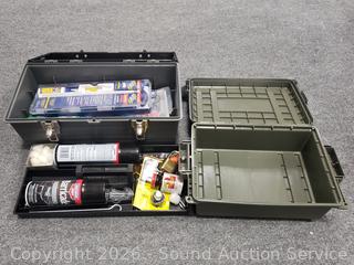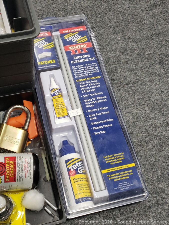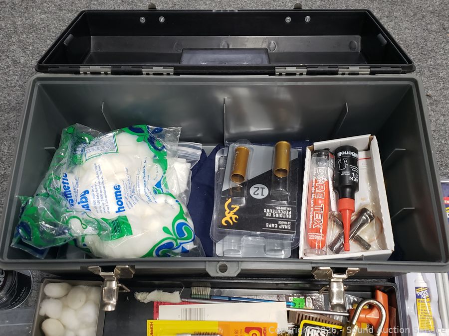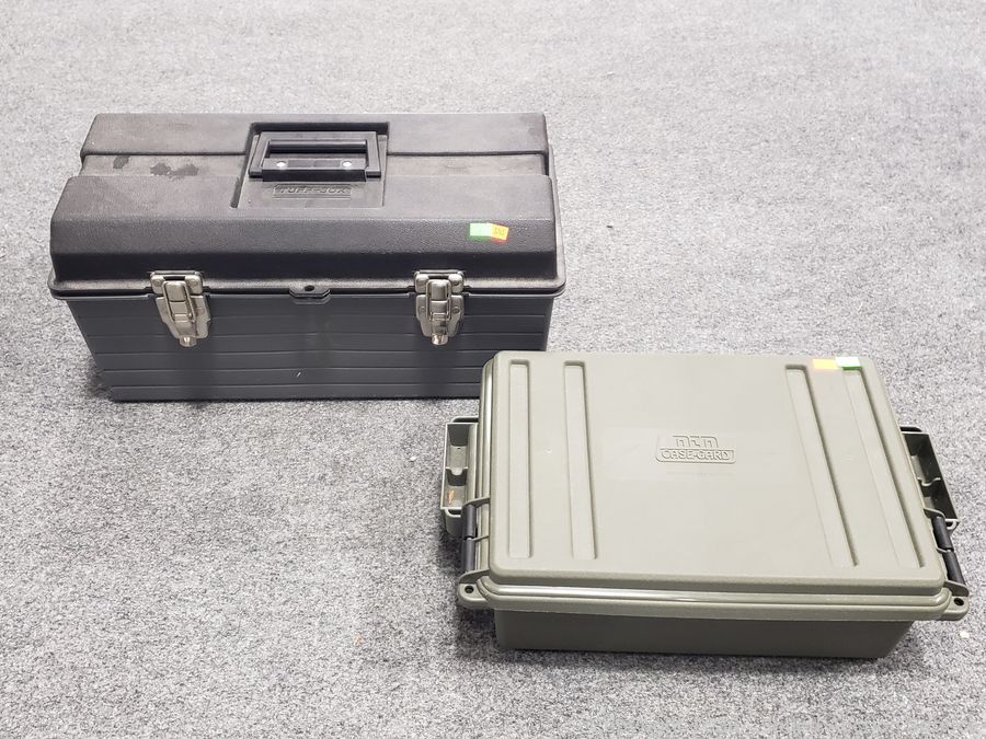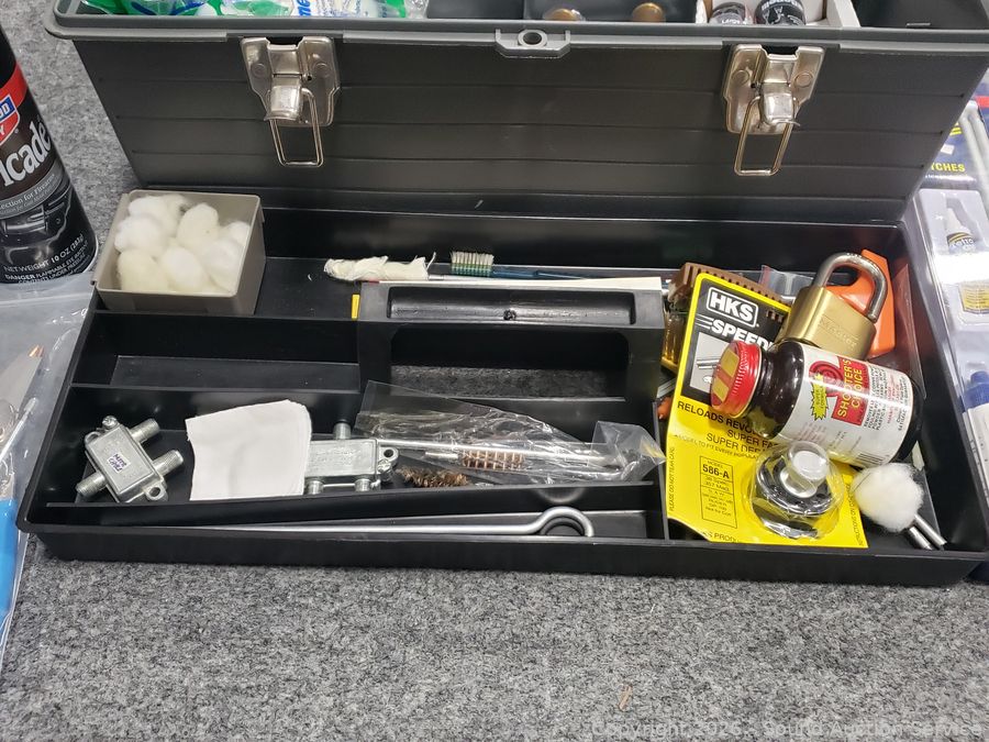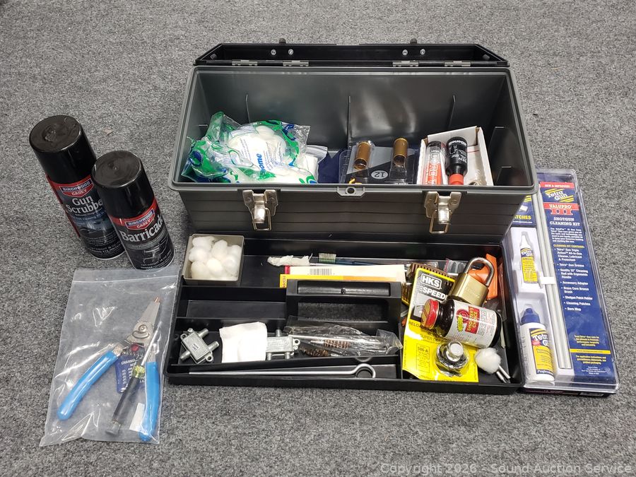 Lot #0168: Tuff-Box Toolbox with Misc. Gun Cleaning Maintenance & MJM Case Gard Case