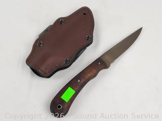 Lot #0239: Nice Fixed Blade Knife w/Leather Sheathe