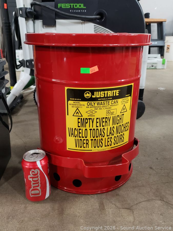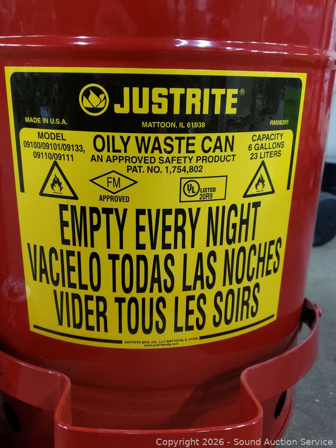Lot #0273: Red Justrite Stainless Steel Step Shop Bin
