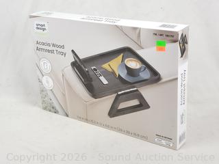 Lot #0113: Smart Design Black Acacia Wood Armrest Tray