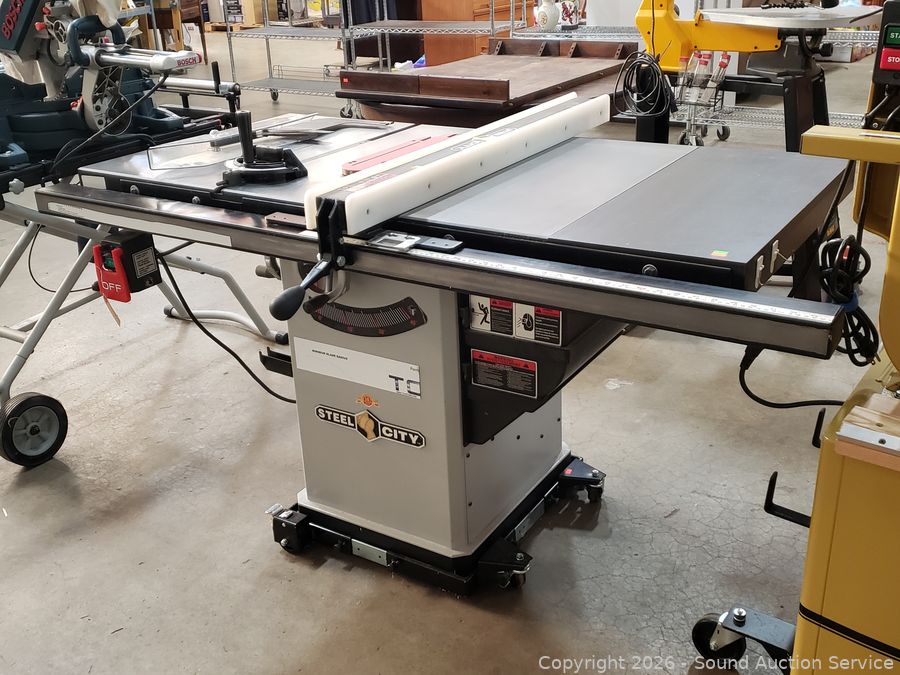 285 Lots including Jet Belt & Disk Sander, Steel City Table Saw, Powermatic 14” Bandsaw, Steel City 17” Drill Press, Bosch 12” Compound Miter Saw, Hammer Jointer/Planer, 19” Expandable Roller Table, 25G Air Compressor, Delta Dust Collector, DeWalt Scroll Saw, Woodworking Tools, Leatherworking Tools, Cabinet Clamps, Kreg Mobile Project Centers, Stihl Chainsaw, Walko Pro Workbench, Pelican/Plano Waterproof Cases, Woodpecker Gauges/Rules/Squares, Ammunition, 9mm Sig Sauer Mags, Holsters, Narex Chisels, Carving Tools, Sweden Hatchets & More!!!