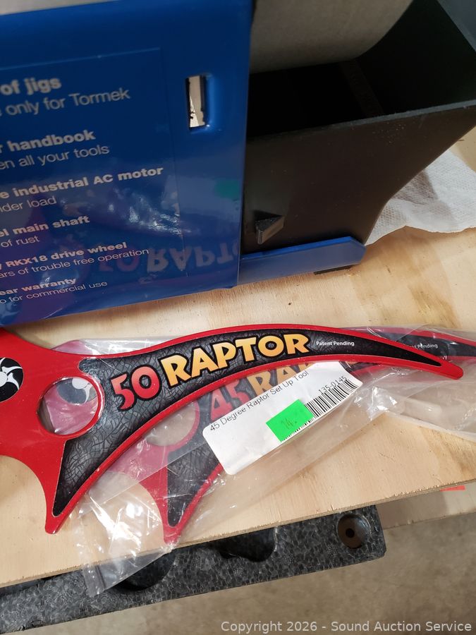 In great condition. Comes with manual, attachments, wood turning kit, Raptor degree tools. Refer to photos for lot contents, more details. 49" H x 21.5" W x 20" overall.