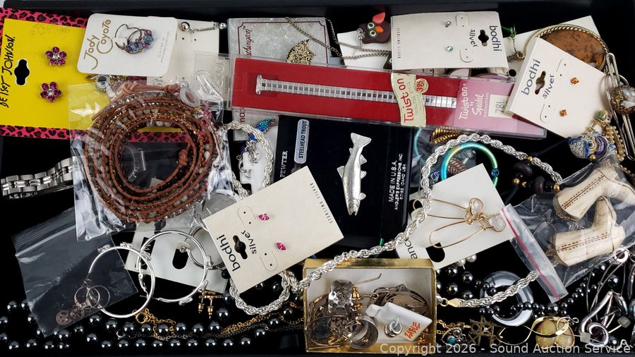 Tray is NOT included. Some pieces are marked silver, did not test silver. necklaces, earrings, etc.