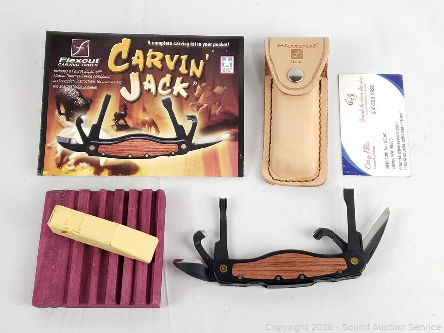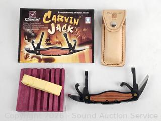 Lot #0109: Flexcut Carvin' Jack Folding Pocket Carving Tool Set w/Leather Sheathe