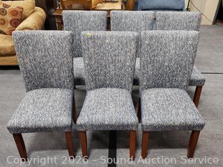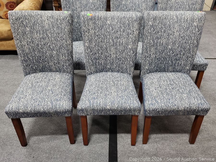 Lot #0009: Set of 6 Blue & White Upholstered Accent/Dining Chairs