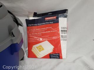 Appears to be functioning as intended. Comes with hose, bags, adapter, 3 nozzles.