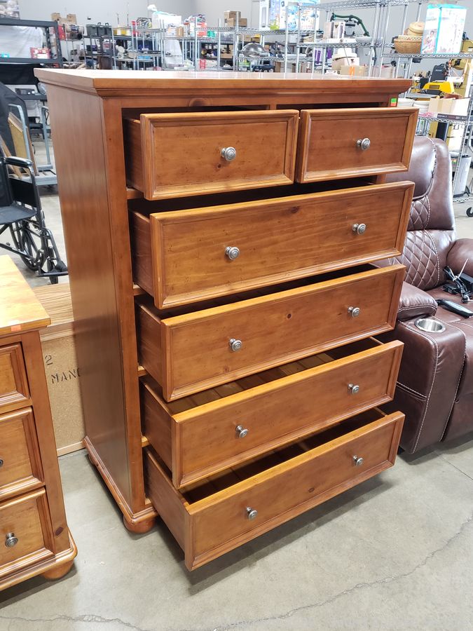 Lot #0001: Nice Natural Wood 6-Drawer Highboy Dresser