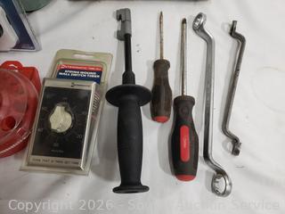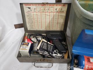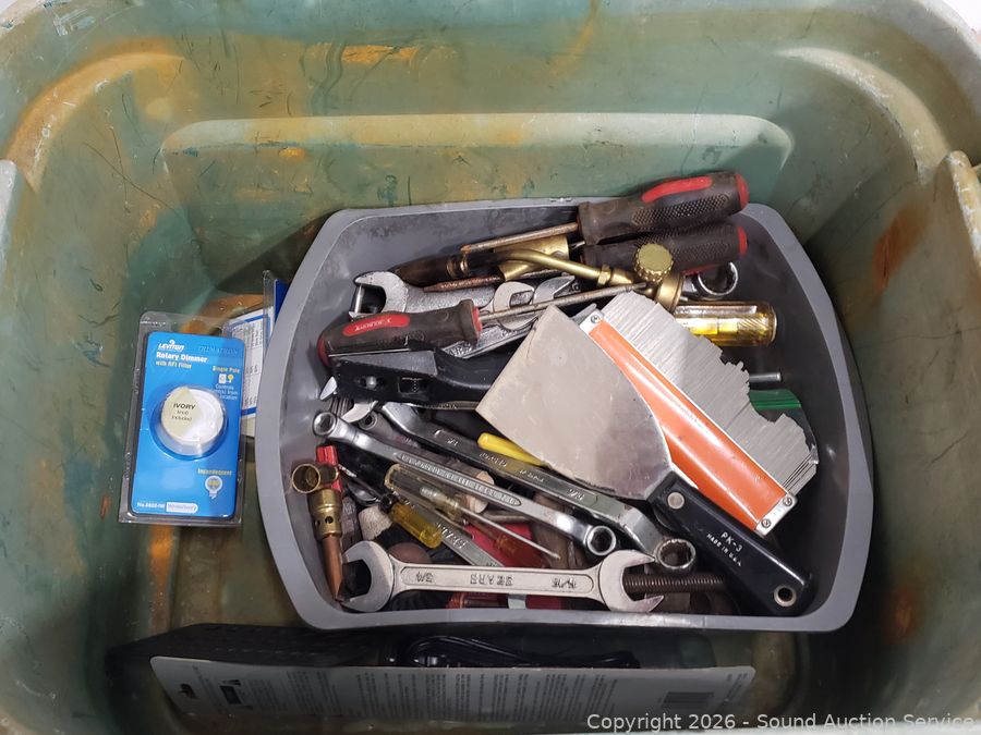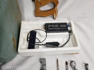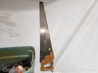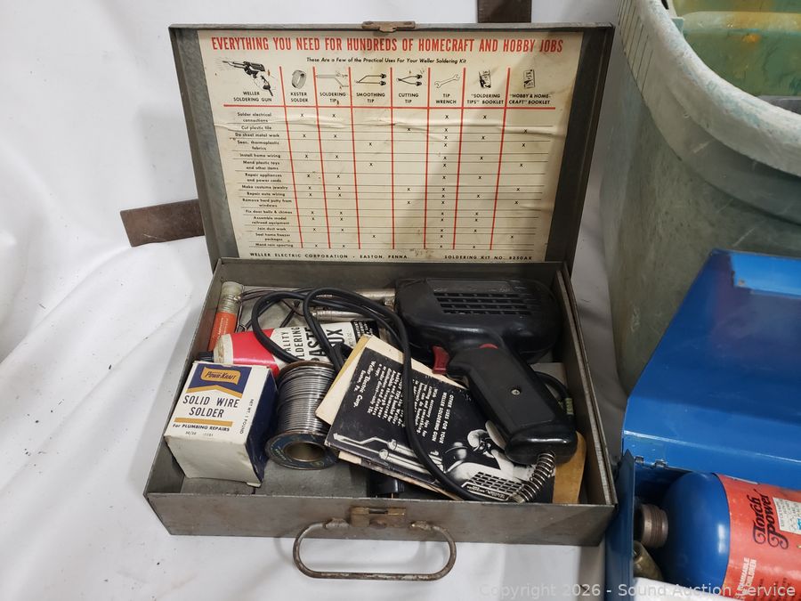 Soldering guns, hand tools, crosscut saw, carpenters square, etc. Refer to photos for lot contents, more details.