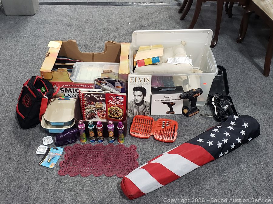 354 Lots including 2pc Gray Upholstered Chaise Sectional Sofa, Futon Sofa, TV’s, Apex Wheelchair, Corvette Rims, Bookshelves, Elec. Fireplace Media Console, Ikea Pine Shelving Units, Pendleton Blankets/Pillows, Rugs, Tempur-Pedic Queen Adjustable Bed Base, Cubby Shelving Units, Uranium Glassware, Elvis Memorabilia, Antique Literature, Porsgrund Fine China, Primitive Native Indian Harpoon, Dolls, Silverplate Flatware Sets, Household Goods, Personal Hygiene Products, Pets Supplies & Much More!!!