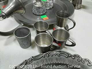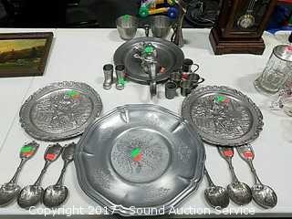 Lot #0022: Collectible Pewter Plates, Cups, Spoons & More