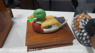 Lot #0016: Wooden Duck Figurine & Duck Trinket Dish