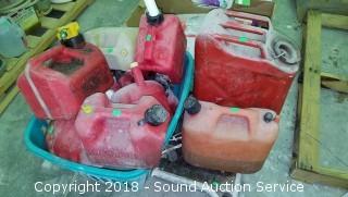 Lot #0566: 10 Gas Cans 1-5 Gallon, Some with Fuel