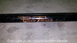 Pruner is gas powered, approx. 13ft long.
