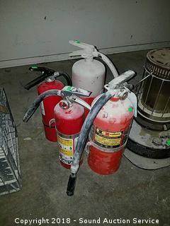 4 extinguishers all full, Toyostove Rainbow RB2 Kerosene Heater & 20" fan.