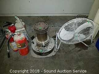 Lot #0574: Gas Heater, Floor Fan & Fire Extinguishers