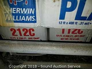 Most have been opened, 2 boxes are sealed of the larger sheeting. Most is 12' x 400'ft