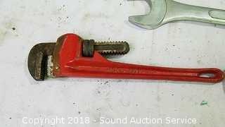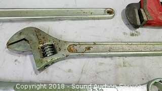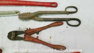 Lot #0564: Huge Pipe & Crescent Wrenches, Shears & More
