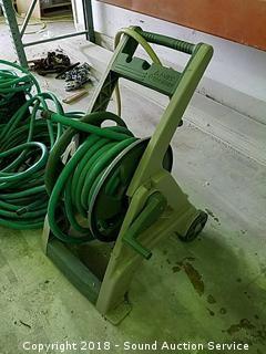 Seeder is by Scotts & Commes with various garden hose & Ames hose reel.