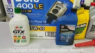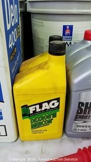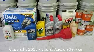 Includes: Case of 15W-40 ((3) 1 Gallon Bottles), (6) 1QT Bottles of 10W-40, (7) 1QT Bottles of 15W-40, (3) 1QT Bottles of 10W-30, (2) Partial Bottles of Transmission Fluid.