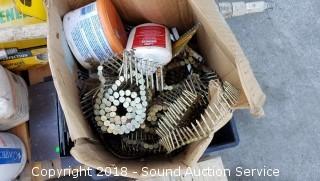 Includes: Coil nails, paint rollers, masking tape, masking paper, extension poles, paint brushes and more.