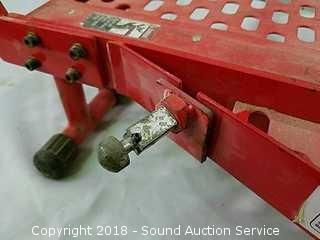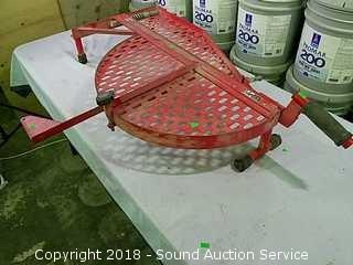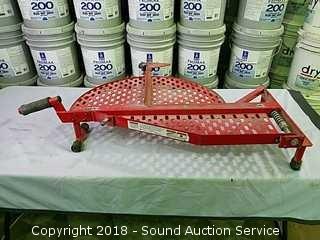 Cuts both asphalt or fiberglass shingles at any angle, face up, face down. Cold rolled steel construction with powder coat paint finish. Rubber feet Open mesh table, Easy adjustment, Weighs 38 lbs, Mounts on roof 3 different ways. Est. $300 Value.