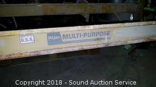 Scaffold is a Bil-Jax. Approx. 6ft H, 74" L, 29" W. The scaffold deck is 7ft L, 19" W.