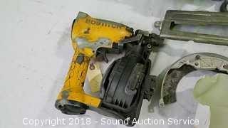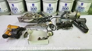 Coil and finish nailers are pneumatic, one needs some work. One of the worm drive saws is missing the blade protector.