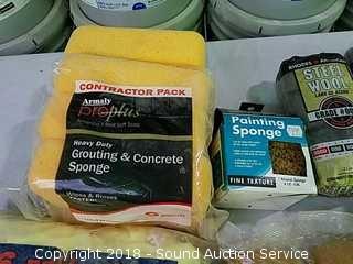 Lot #0427: Sponges, Steel Wool, Rubber Gloves & Cloths