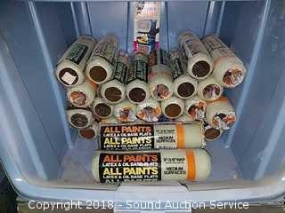 Purdy 3" roller covers, and various brands & naps 9" roller covers. 3 of the bins have clear doors.